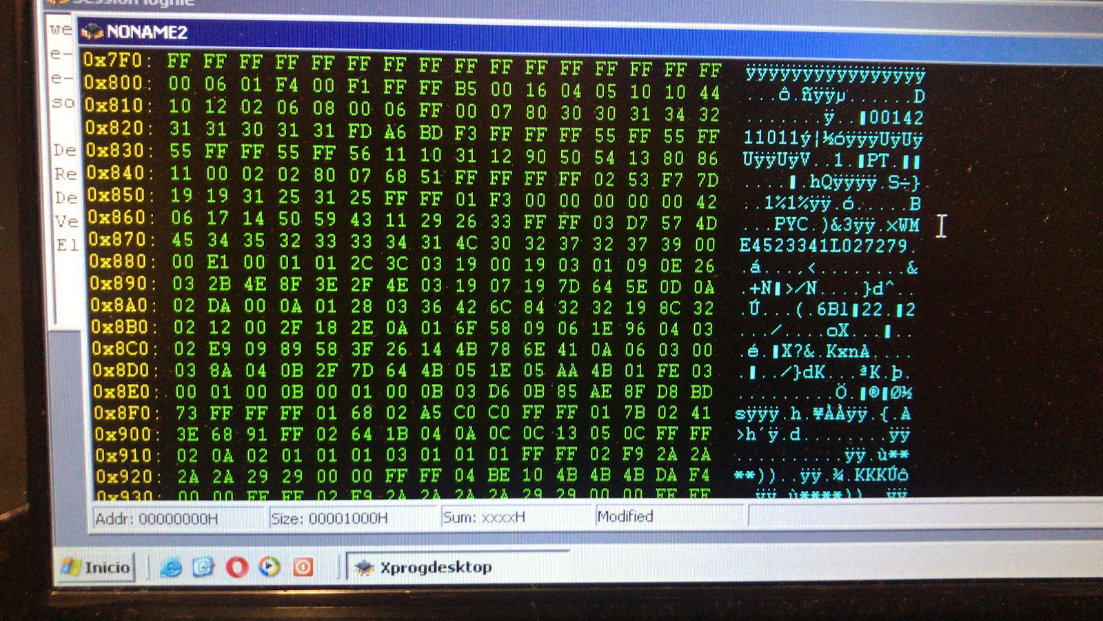 Crea un nuevo fichero (File->New) y lee el contenido actual de la EPROM (por si acaso dejarlo como estaba). El VIN del coche está situado a partir de la dirección 0x86E.
