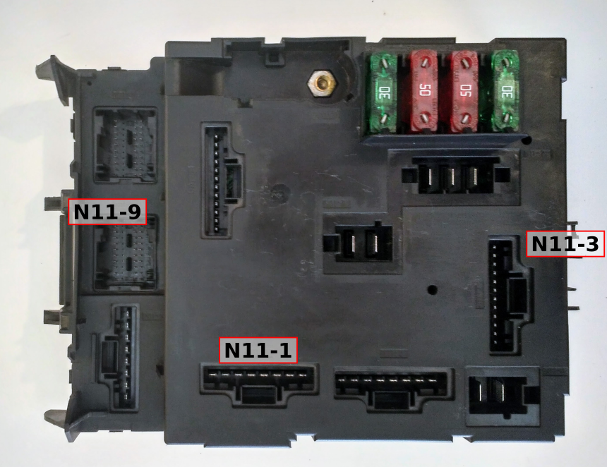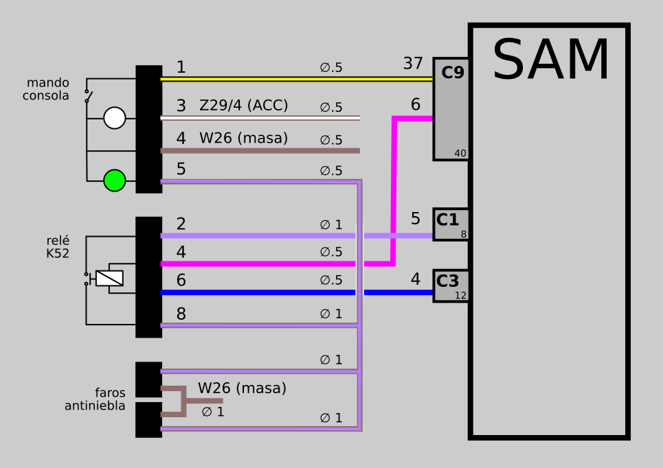 Sacas el maletero, encima de la caña hay un mazo de cables que entran al coche. Es redondo alrededor y tiene unos agujeritos marcados tapados con goma.