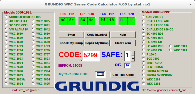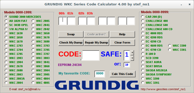 Arrancamos el Grundig WKC Series Code Calculator 4.00, que se puede encontrar en: http://data.autorepairmanuals.ws/18b7ae227cb984888ecced1a26270a85 Cuidado con los virus!