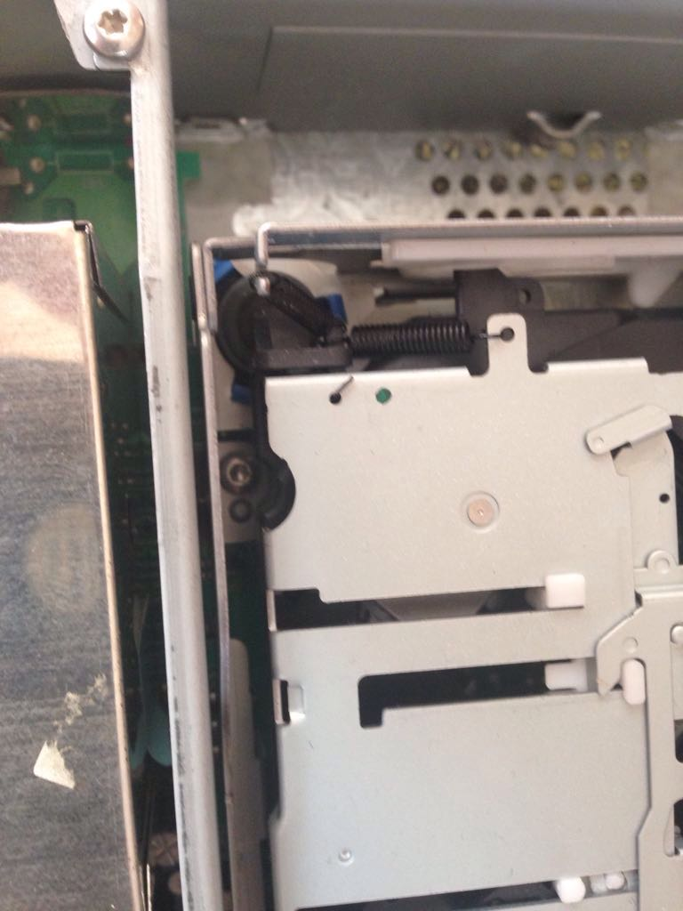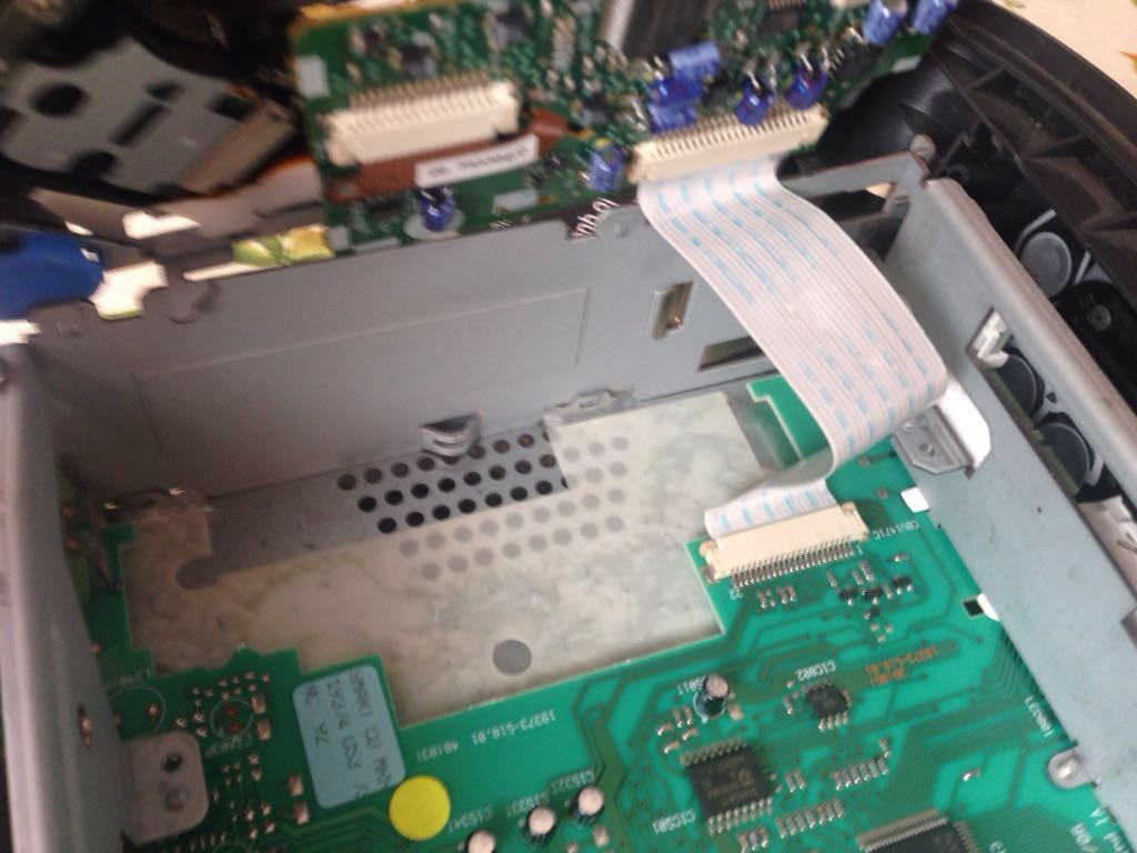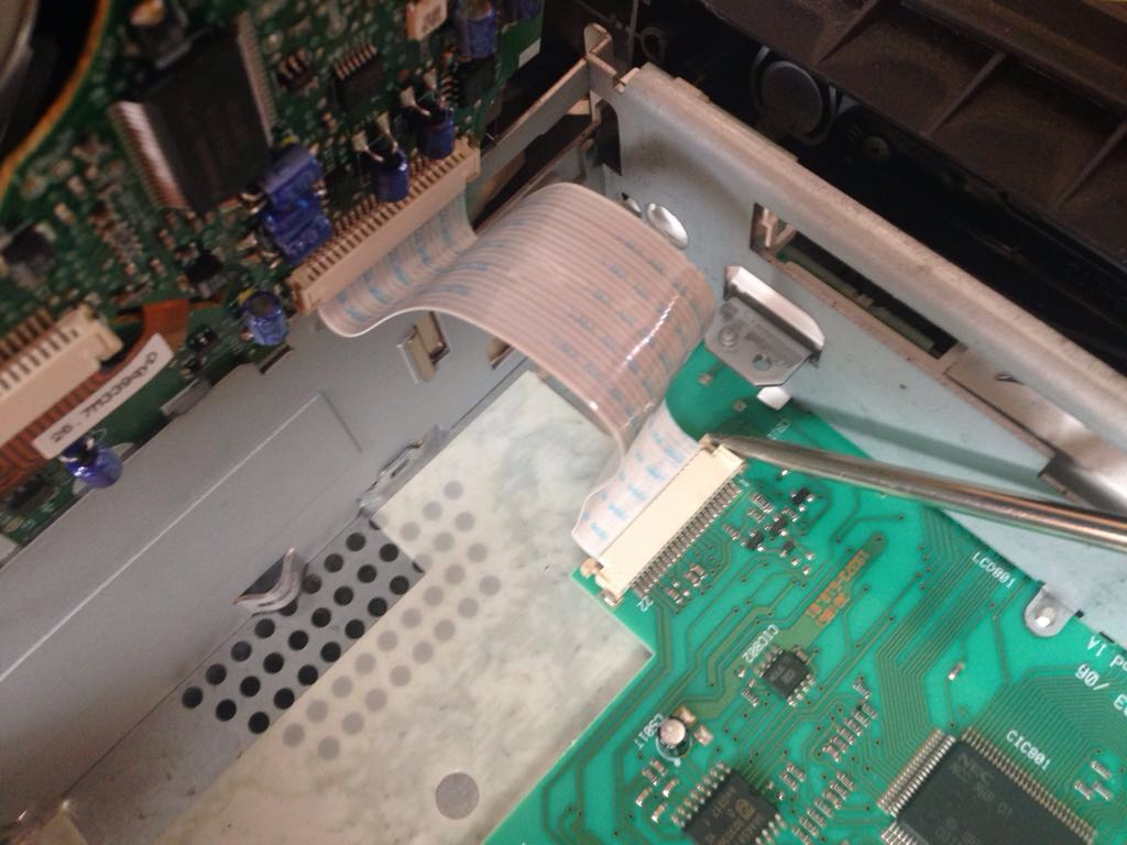 Levantando por el lado derecho visto desde atrás, veremos en el otro lado el cable plano que lo conecta: