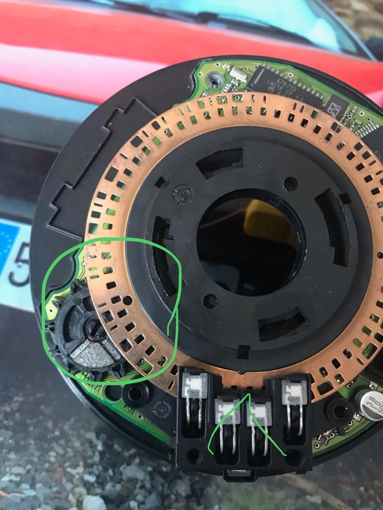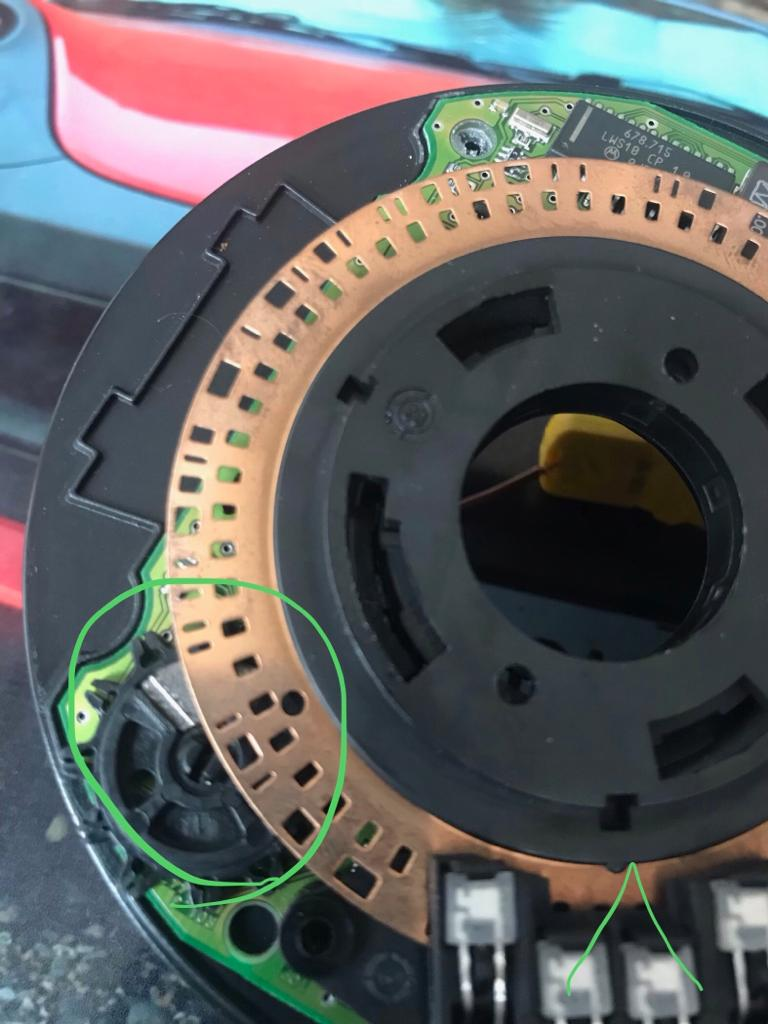 Para sacar el volante ponlo completamente centrado para que el tornillo del volante bloquee el sensor del esp, al moverlo un diente y ponerlo otra vez, no lo entres completamente, como ahora estará un poco torcido, tienes que ponerlo recto para que encajen las pestañas del esp en el soporte.